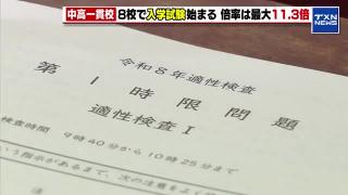 愛知県教育委員会によりますと、第1志望と第2志望をあわせた志願者総数は5万3196人で、倍率は1.73倍となっています。志願者総数は比較できる1989年以降で過去最低となりました。26日、27日には、一部の高校で面接などが行われます。合格発表は3月10日です。